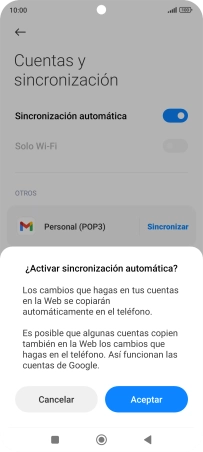 Pulsa el indicador junto a "Sincronización automática" para activar o desactivar la función.