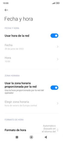 Pulsa el indicador junto a "Usar hora de la red" para activar la función.