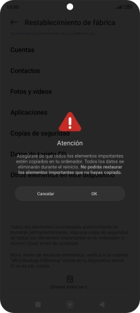 Pulsa OK. Espera unos instantes mientras el teléfono restablece la configuración predeterminada. Sigue las indicaciones de la pantalla para configurar el teléfono y dejarlo listo para su uso.