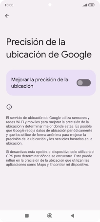 Si pulsas el indicador junto a "Mejorar la precisión de la ubicación" para desactivar la función, el teléfono podrá encontrar tu posición exacta con ayuda de los satélites GPS, pero le llevará más tiempo ya que no tiene acceso a informaciones complementarias de la red móvil o una red wifi cercana.