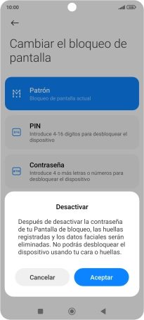 Pulsa Desactivar bloqueo de pantalla e introduce el código de seguridad extra que has creado anteriormente.