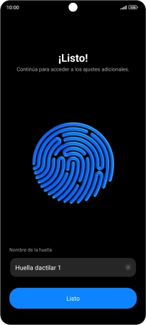 Sigue las indicaciones de la pantalla para crear una huella digital como código de seguridad.