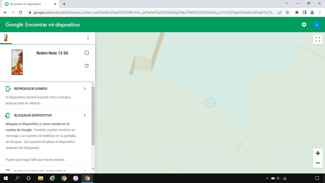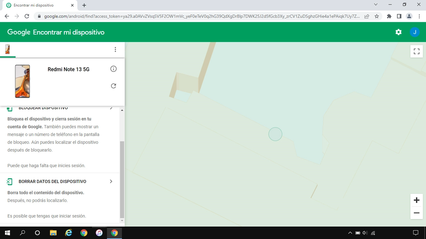 La última posición del teléfono se visualiza en el mapa.