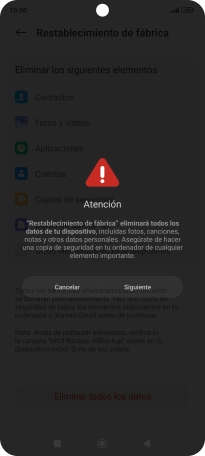 Pulsa OK. Espera unos instantes mientras el teléfono restablece la configuración predeterminada. Sigue las indicaciones de la pantalla para configurar el teléfono y dejarlo listo para su uso.