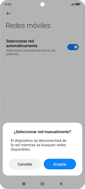 Pulsa el indicador junto a "Seleccionar red automáticamente" para desactivar la función.