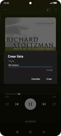 Introduce el nombre deseado de la lista de reproducción y pulsa Crear.