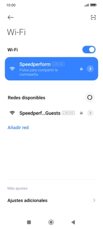 Si la red wifi está protegida con una contraseña, aparecerá un icono de candado junto al nombre de la red wifi. El administrador o el proveedor de red te puede proporcionar la contraseña.
