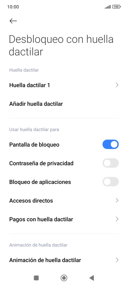 Sigue las indicaciones de la pantalla para crear una huella digital como código de seguridad.