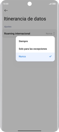 Pulsa la lista desplegable junto a "Roaming internacional".