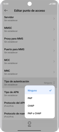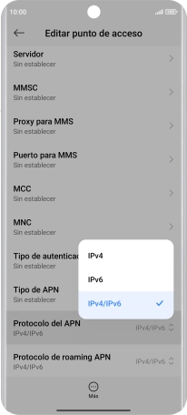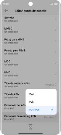 10. Selecciona el protocolo del punto de acceso (APN) en roaming