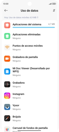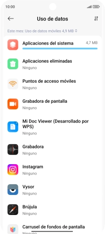 El consumo de datos por cada aplicación aparece bajo el nombre de la aplicación.
