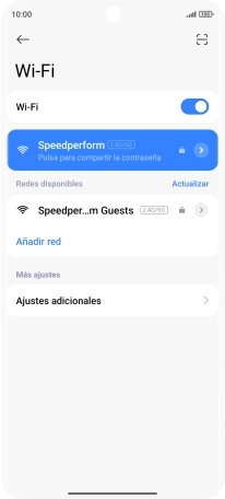 Si la red wifi está protegida con una contraseña, aparecerá un icono de candado junto al nombre de la red wifi. El administrador o el proveedor de red te puede proporcionar la contraseña.