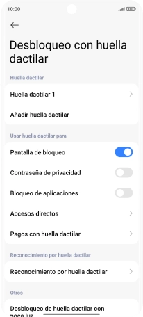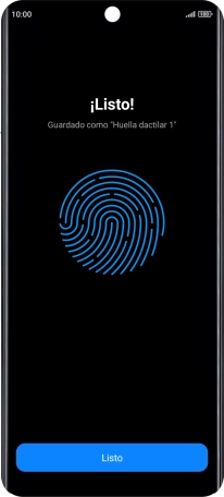 Sigue las indicaciones de la pantalla para crear una huella digital como código de seguridad.