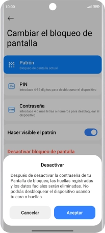 Pulsa Desactivar bloqueo de pantalla e introduce el código de seguridad extra que has creado anteriormente.