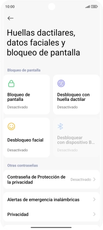 Pulsa Huellas dactilares, datos faciales y bloqueo de pantalla.