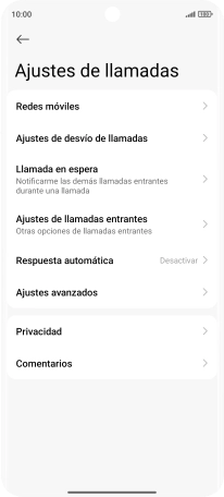 Pulsa el indicador junto a "Llamada en espera" para activar o desactivar la función.