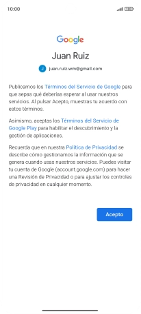 Pulsa Acepto y sigue las indicaciones de la pantalla para seleccionar los ajustes de tu cuenta de Google.