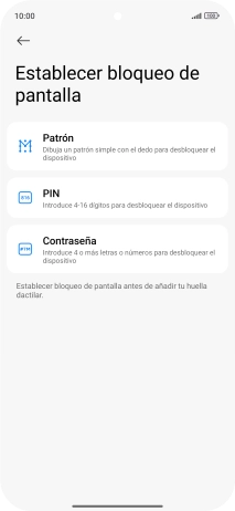 Sigue las indicaciones de la pantalla para crear una huella digital como código de seguridad.