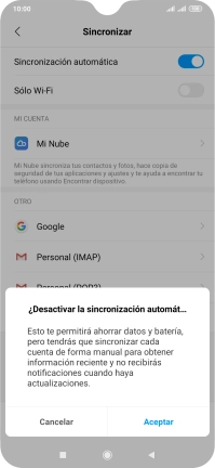 Pulsa el indicador junto a "Sincronización automática" para activar o desactivar la función.