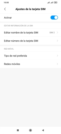Pulsa el indicador junto a "Activar" para activar o desactivar el uso de la tarjeta SIM.