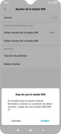 Si desactivas el uso de la tarjeta SIM, pulsa Aceptar.