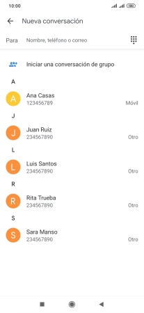 Pulsa en el campo de búsqueda e introduce las primeras letras del nombre del destinatario deseado.