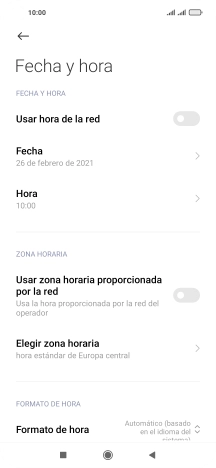 Pulsa el indicador junto a "Usar hora de la red" para activar la función.