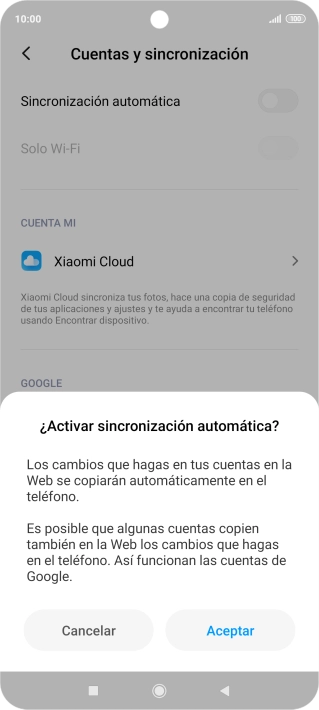 2. Activa o desactiva la sincronización automática de contenido