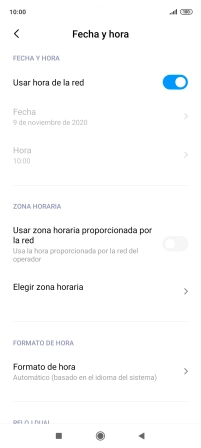 Pulsa el indicador junto a "Usar hora de la red" para activar la función.