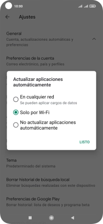 Para activar la actualización automática de apps a través de wifi, pulsa Solo por Wi-Fi.