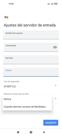 Pulsa Cuando elimine correos de Recibidos para eliminar los correos electrónicos del servidor cuando los borras del teléfono.