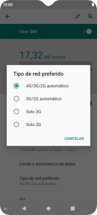 Puede haber diferentes tipos de red disponibles, dependiendo del lugar donde te encuentres. Si seleccionas la conexión automática con la red de mayor velocidad, tu teléfono siempre se conectará a la red de mayor velocidad disponible en cada momento