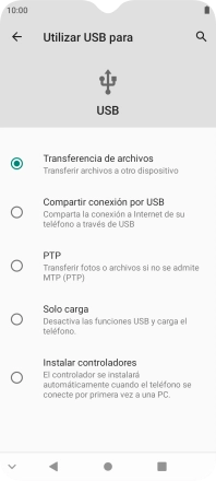 2. Selecciona el ajuste de la conexión USB