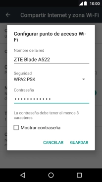 Pulsa el indicador junto a "Crear punto de acceso Wi-Fi" para activar la función.