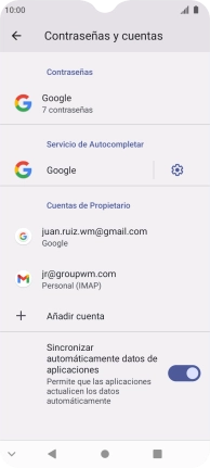 Pulsa en el campo junto a "Sincronizar correo de esta cuenta" para activar la función.