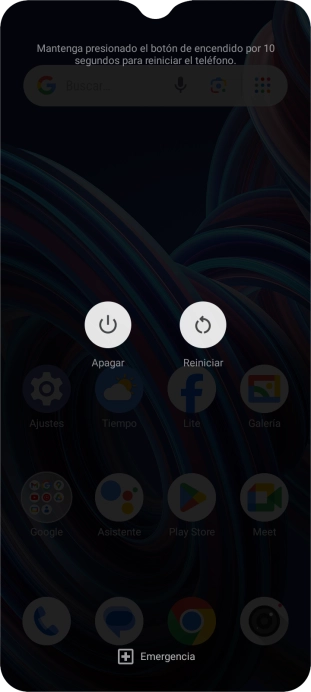 Mantén pulsado el botón de encender o apagar hasta que se encienda la pantalla.